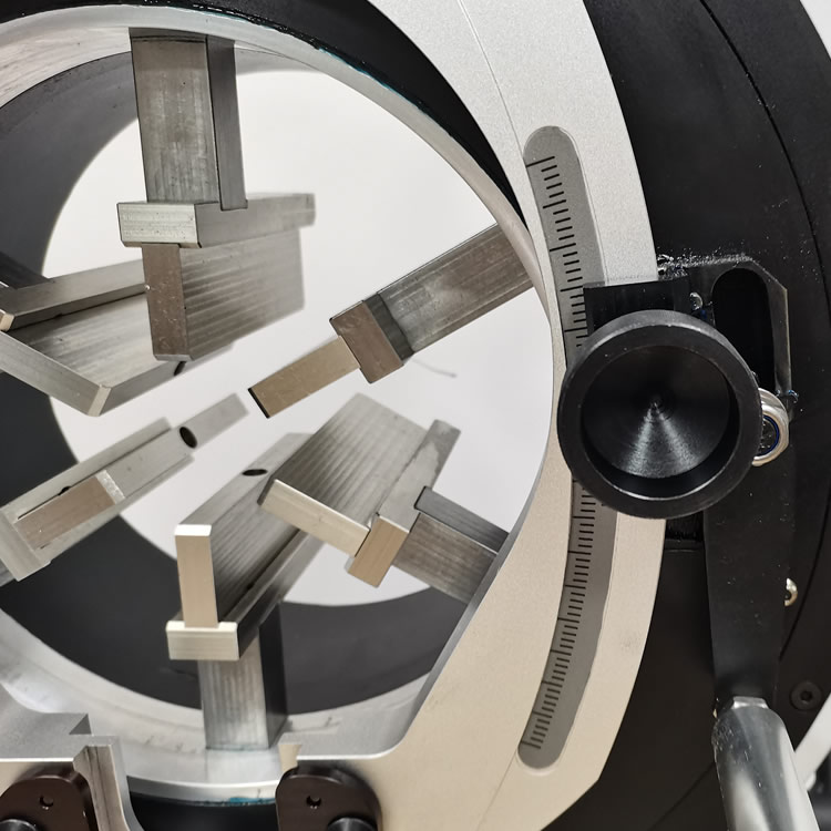 用于切割59--220MM管材的切割,帶雙刀頭(可以切割彎頭),電源線防纏繞線裝置設計,刀片到夾具的距離為 2mm,有效減少小管徑薄 壁管切割時的震動及變形,3 個不銹鋼材質同心軸夾具設計。